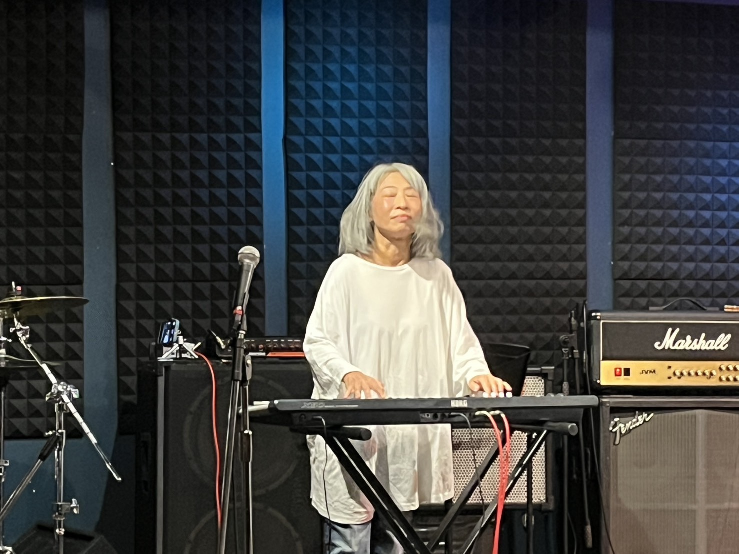 鍵盤まるこは倍の作業量です。左手でベースラインを弾いてます。