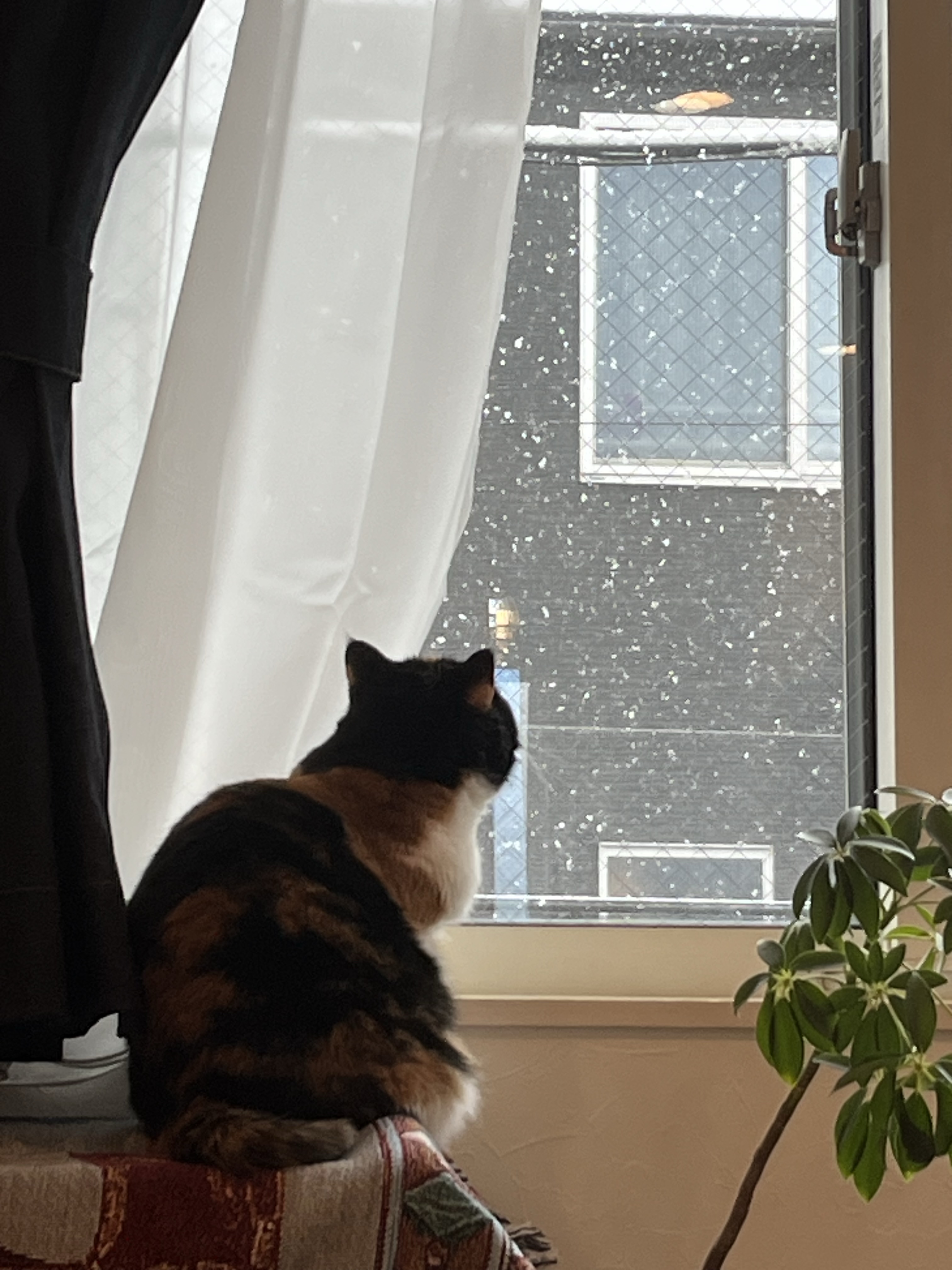 雪をみる猫、うちのかにちゃんです。